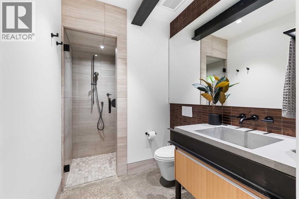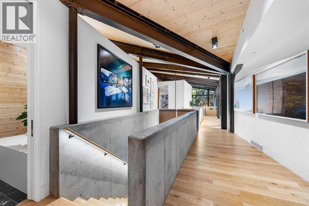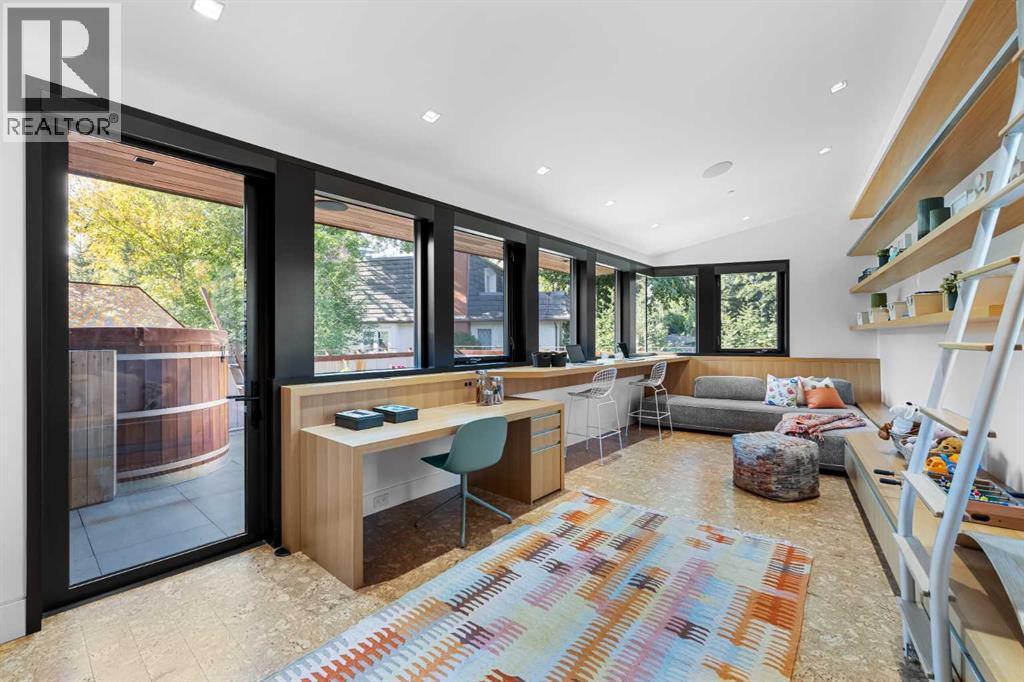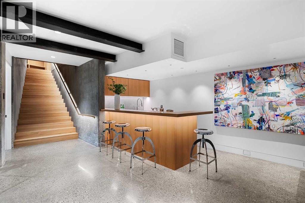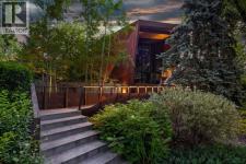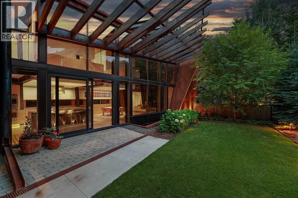 Welcome to Montreal House, an award-winning landmark residence in Calgary’s historic Mount Royal, designed by renowned architect Jeremy Sturgess. This home isn’t just built — it’s imagined for connection, light, and lasting impact. Tucked away on a quiet, tree-lined street, this 5-bedroom residence spans 4,000 sq. ft. above grade, with over 5,700 sq. ft. of total living space and a triple garage, combining bold design with livable family comfort.From the street, its sleek linear form opens to a private west-facing yard framed by mature trees. Inside, soaring double-height ceilings and open living spaces create a natural flow for gathering, while east-facing bedrooms greet the morning sun.The exterior blends Corten steel and Kayu Batu wood, materials chosen to weather and evolve beautifully over time. A 25-foot sculptural steel fireplace bridges indoors and out, while 18 cantilevered glulam beams shade the glass walls and frame the western garden.Upstairs, the cantilevered primary suite floats into the treetops, complete with a roof terrace overlooking the city skyline. Every angle has been designed with purpose — balancing privacy, sunlight, and seamless transitions from indoors to outdoors.The lower level offers a glassed-in wine cellar, guest suite, wet bar, and custom storage for an art collection.Internationally recognized, Montreal House has been a finalist at the World Architecture Festival and honoured with national design awards. It’s more than a home; it’s a place where art, architecture, nature, and everyday living come together. (id:6769)