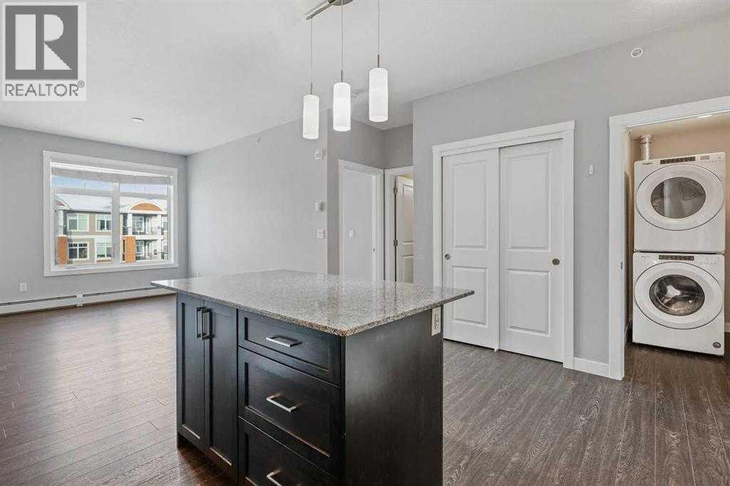 Welcome to Mark101, a delightful top-floor condo featuring 2 bedrooms, 2 bathrooms, and an underground heated parking spot. This unit enjoys a prime location with easy access to amenities and major roads, including the nearby Sage Hill Shopping Center. Inside, the open floor plan highlights a modern, upgraded kitchen and living area. The bedrooms are thoughtfully positioned on opposite sides of the living room, offering privacy, with the master bedroom including a walk-in shower. The unit is fully upgraded with luxury vinyl plank flooring, stone countertops throughout, and a stacked full-size washer and dryer. Enjoy the spacious balcony for outdoor relaxation. Rent covers all utilities except electricity, making this an economical choice. Additional benefits include underground parking and a storage locker, adding to the unit’s value. Sage Hill offers a peaceful, family-friendly community with convenient access to Stoney Trail and multiple shopping centers, blending a small-town atmosphere with city living. Schedule your showing today! (id:6769)