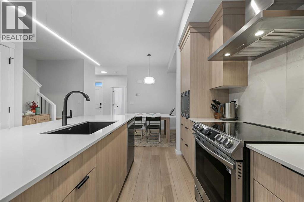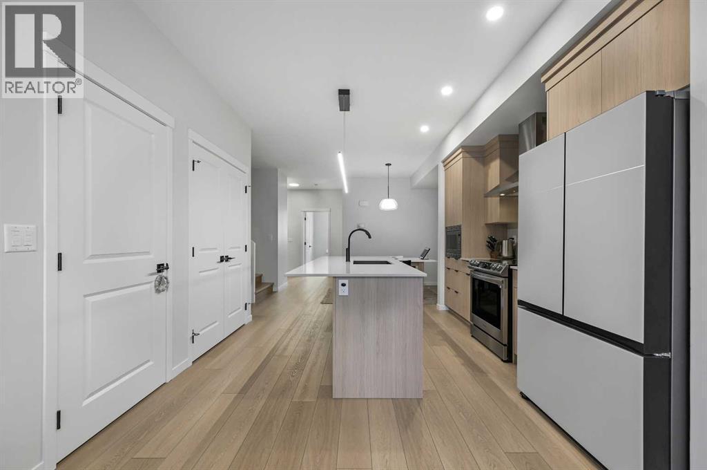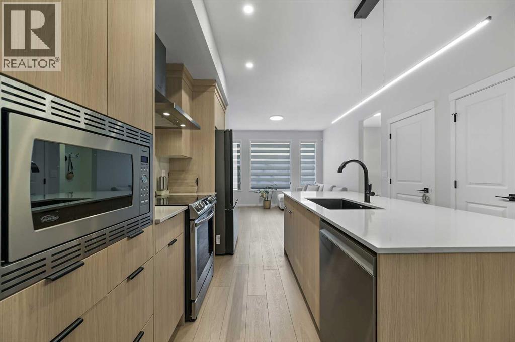 ** Great Value - $80K in upgrades - list available ** Side Entry ** Double Garage ** 1777+ Sq Ft ** 4 Bedroom home ** Immaculately maintained, almost brand new, bright and open plan. Modern design 2-story home in the heart of the vibrant Livingston community. GOURMET KITCHEN - CHEF'S DELIGHT! Custom features include upgraded classic wood-style cabinet doors, an efficient family-approved layout with stainless steel appliances (including a smooth-top stove), a glass panel front fridge, a central island with a flush eating bar, an undermount black granite sink, quartz countertops, custom full-height backsplash tile, and a stainless steel hood fan. The spacious dining room and great room bookend the open design, all of which feature 9-foot ceilings. The larger floor plan features a front main floor bedroom/office/den, an oversized front foyer, a back mudroom, a staircase with railings, and a landing. Super bright design!! All flooring is upgraded with wide-plank LVP hardwood flooring on the main floor and tile floors in the upper bathrooms- no carpet! BONUS: The upstairs bonus room is perfect for a home office, spare bedroom, or extra TV room. Three generously sized bedrooms & 2.5 bathrooms. NOTE: The primary bedroom features a private 3-piece en-suite with an upgraded sink basin, quartz countertops, and a spacious walk-in tiled shower with glass doors. Other upgrades include custom window coverings, an unspoiled basement with high 9' ceilings, side entry, oversized windows, a rough-in bathroom, and a 22' x 22' double-car garage with room for extra street parking out front. Excellent curb appeal with a covered front porch, fully landscaped with a walkway and fencing, all complete. Available for a March 2026 possession date. Please feel free to call your friendly REALTOR(R) to view. (id:6769)